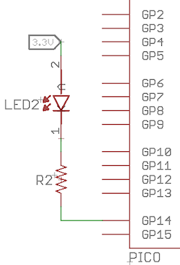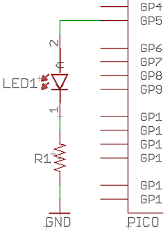 High-side switching: The simplest way to connect an LED is to use the GPIO port as a high-side switch, where the Pico provides the positive supply voltage to the LED's anode, and the LED's cathode is connected to GND.