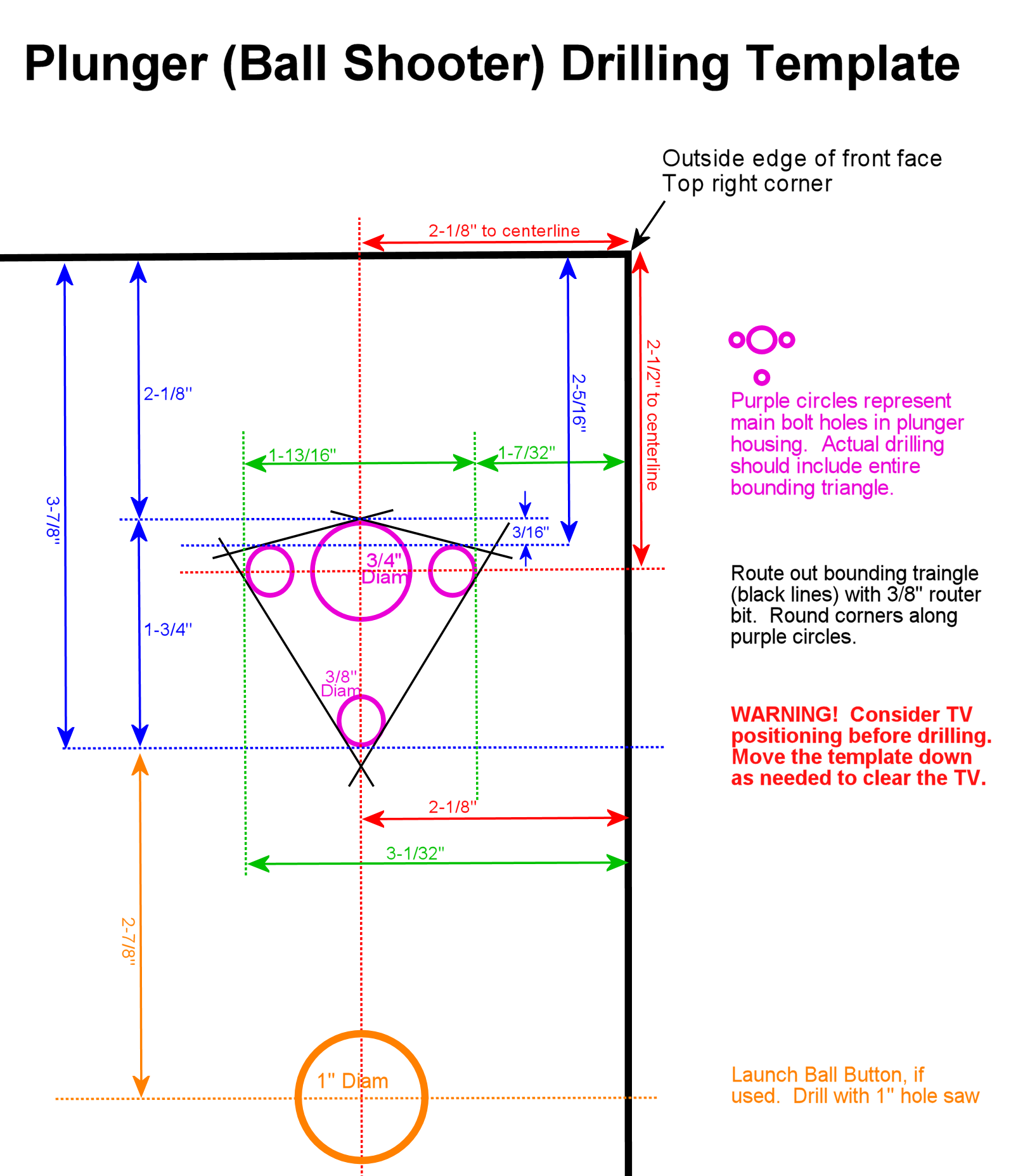 I couldn't find an accurate template anywhere for drilling the mounting hole for a plunger, so I measured some real machines. I'm sharing it here for others looking for the same information.